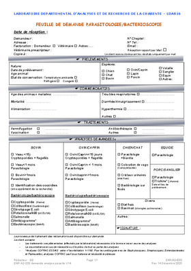 Les flacons adaptés à chaque analyse sont disponibles à la Réception du Laboratoire.